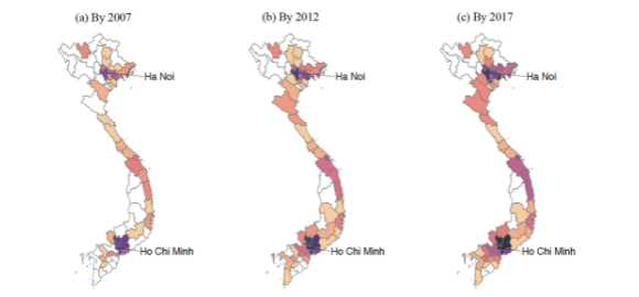 Using data from over 180,000 FDI projects in over 100 countries, the authors show that greenfield projects resulted in an average of 45 additional unique exported products one year after the start of a greenfield foreign direct investment project. Outside of global trade data, the paper takes a closer look at Vietnam due to their accessible firm-to-product data. Using this data, the authors found that, from 2003-2017, products related to FDI experienced a 90% increase in export volume within the first four years of a project starting, while import volume increased by 30%. These findings reflect how FDI from Samsung and Intel in Vietnam increased trade related to electronics production, shifting the economy away from a reliance on natural resources.