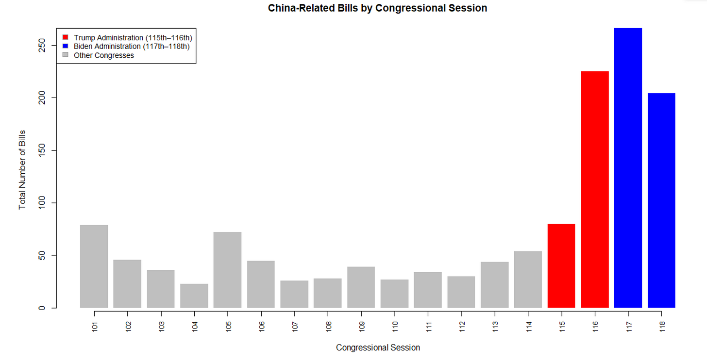 New data from the Trade War Lab tracks three decades of China-related legislation on Capitol Hill