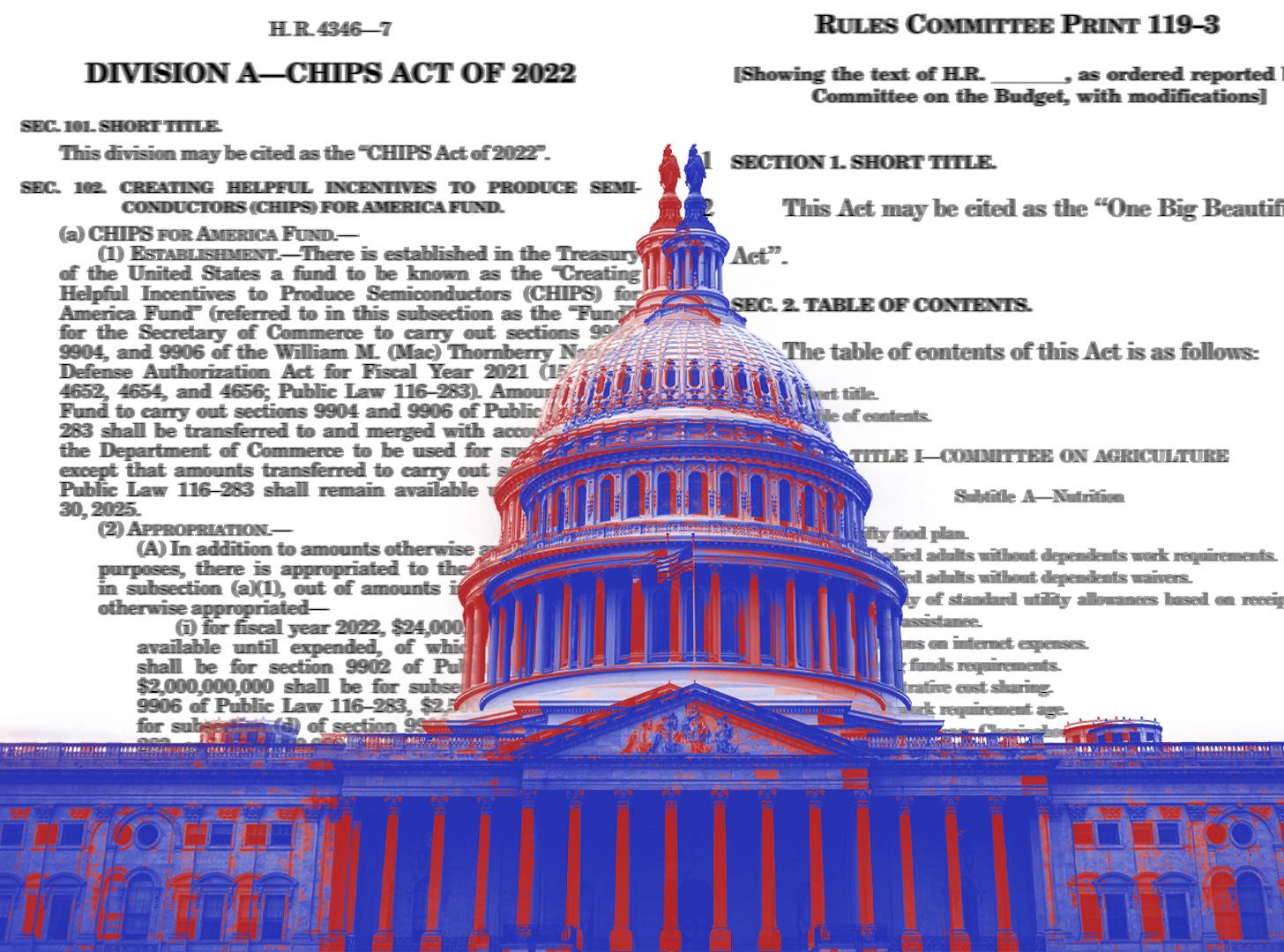 Major legislation such as The Tax Cuts and Jobs Act and the CHIPS and Science Act embody Congresses attitude towards China, locking the U.S into an era of strategic competition with Beijing. The Tax Cuts and Jobs Act slashed the corporate tax rate from 35% to 21%, and allotted a 100% tax deduction on equipment, materials, and manufacturing facilities used in efforts of economic investment on U.S. soil. Those arguing for the bill suggested that the tax cuts would spur American industry and promote competition with China. Many of these provisions set to expire in 2025 were extended indefinitely under the One Big Beautiful Bill Act.